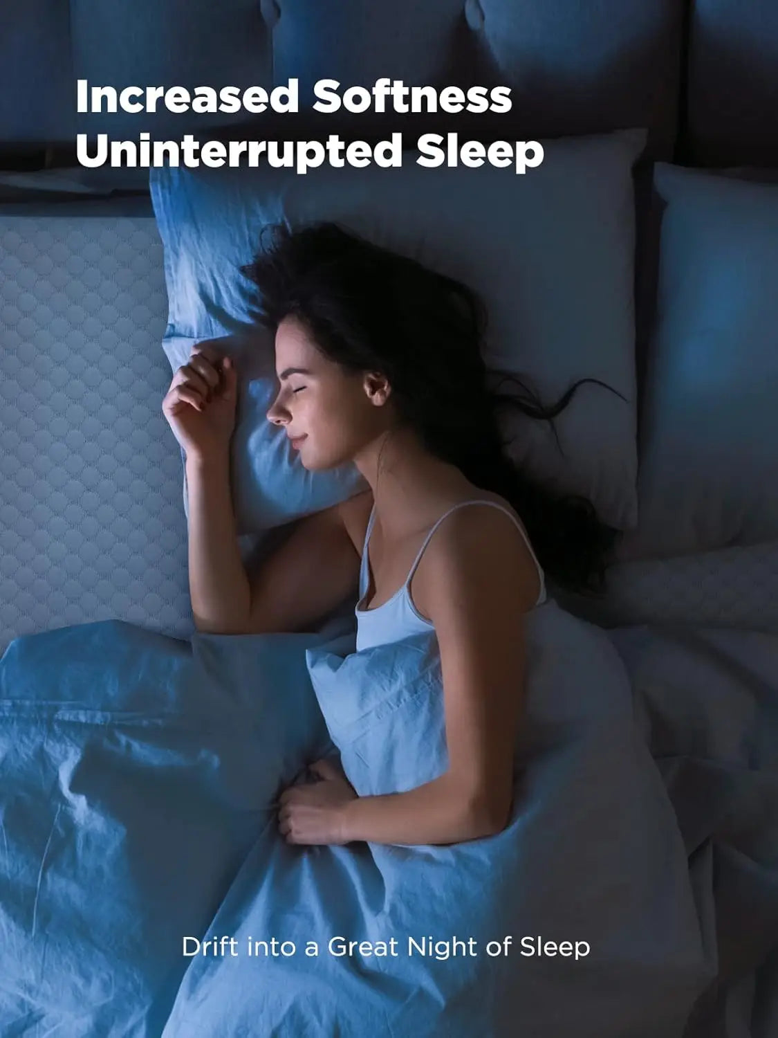 2. Increase Softness and Comfort - A 2-inch mattress topper is a perfect addition to a new mattress, which is able to add softness and offer extra support. Our breathable mattress topper helps disperse the pressure on your body, keep you cozy, regulate your body temperature, and make you sleep more comfortably