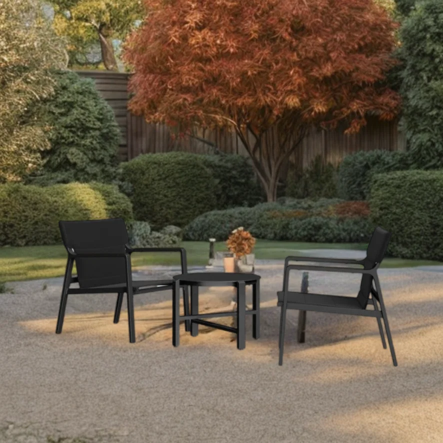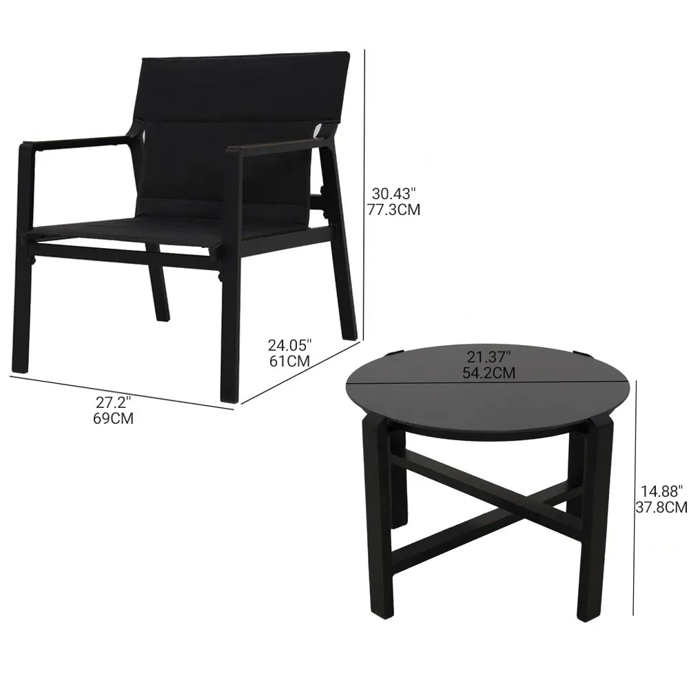 3-Piece Bistro Set with Mesh Sling Armchairs, Outdoor Conversation Set with Side Table, Weather-Resistant Aluminum, Mesh Sling