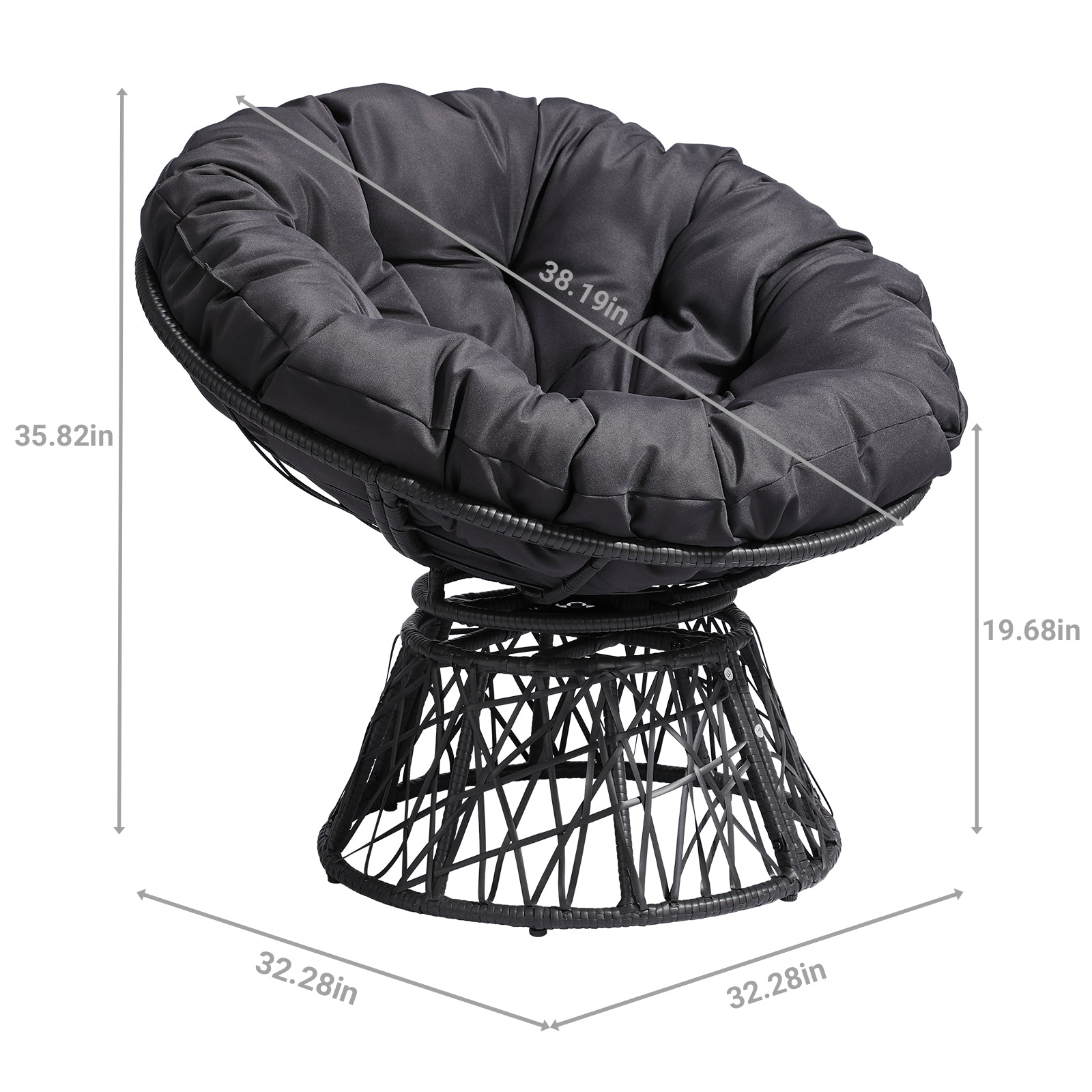 Upgrade your lounging experience with this 38" Ergonomic Swivel Wicker Papasan Chair. Designed for ultimate comfort and style, this cozy chair features a spacious bowl-shaped seat and a thick tufted cushion that cradles your body in plush softness. Made from fade-resistant PE rattan and supported by a powder-coated steel frame, this papasan chair is as durable as it is inviting. The 360° swivel base adds flexibility and fun, making it the perfect addition to your living room, bedroom, or reading nook.