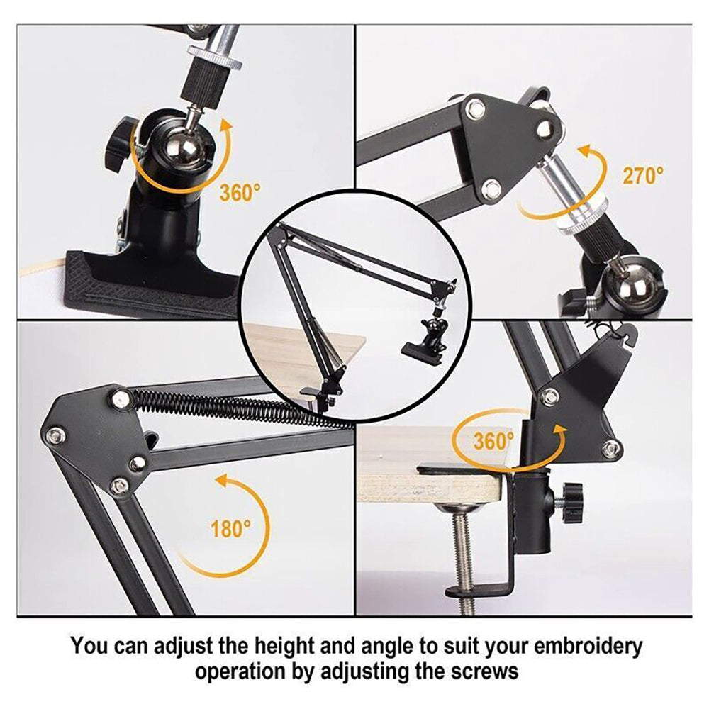 [Stable and Sturdy] The grip clamp has strong friction, which can firmly grasp the embroidery hoop to avoid shaking, making embroidery projects easier and more efficient.