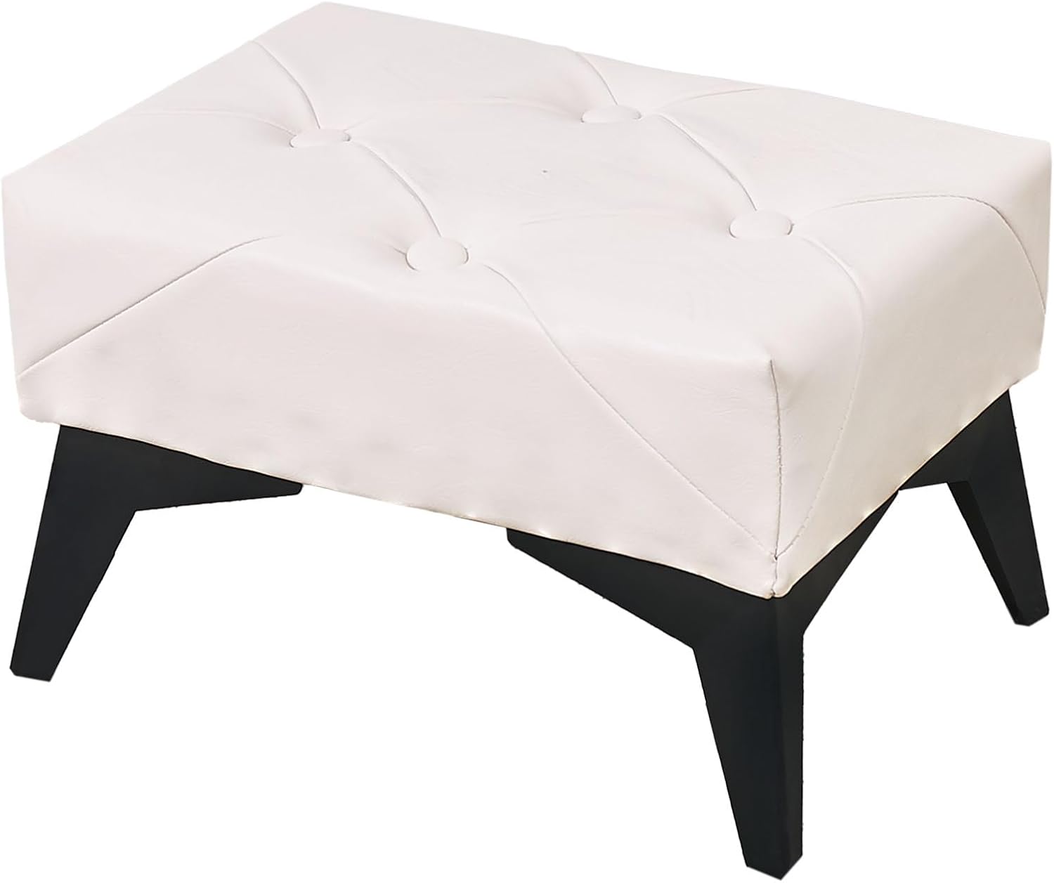 Small Footstool Ottoman, Leather Riveted Soft Footrest Ottoman with Iron Legs, Sofa Footrest Extra Seating for Living Room Entryway Bedroom White