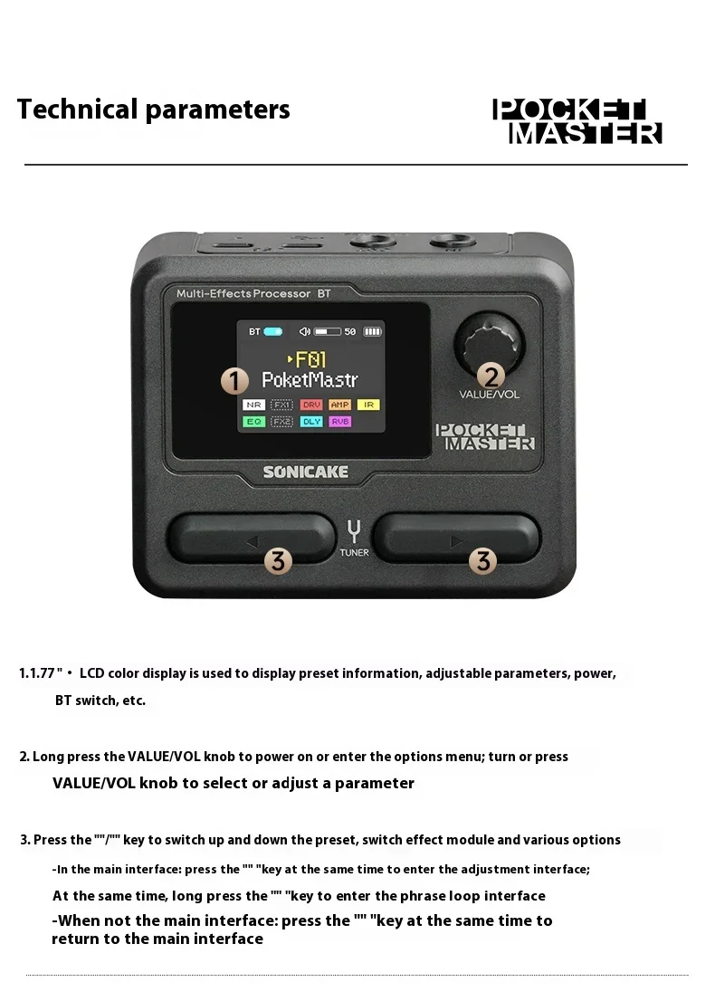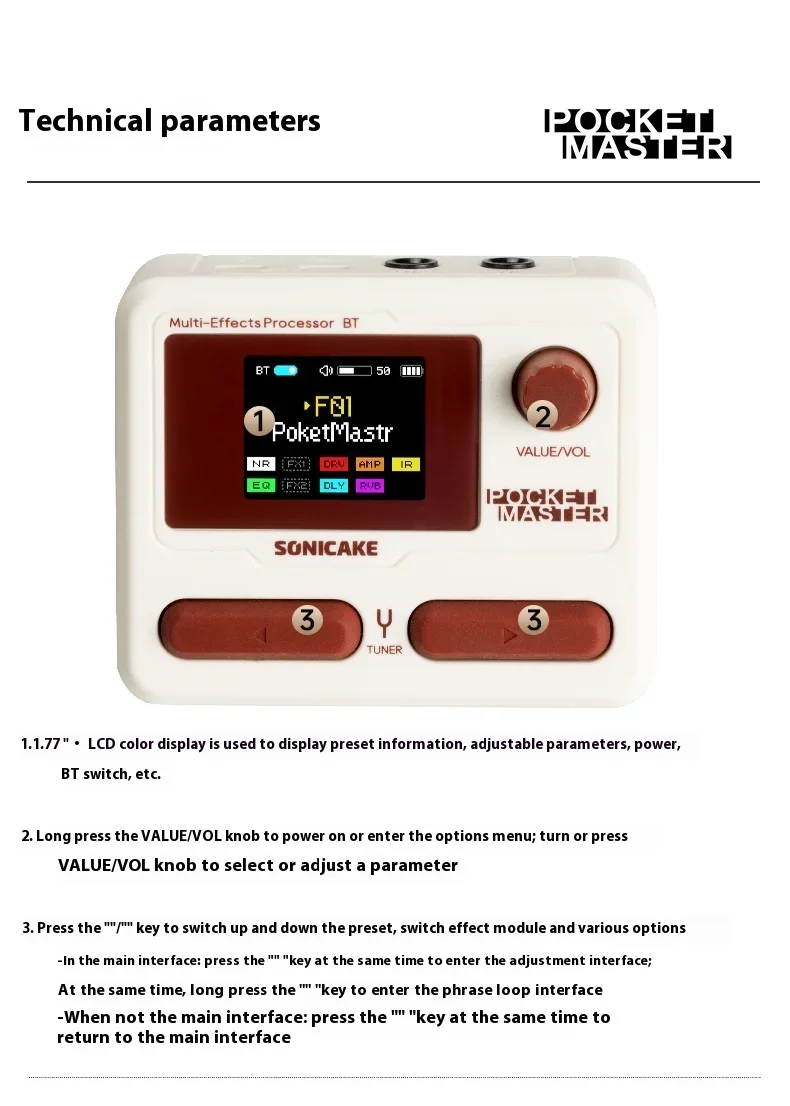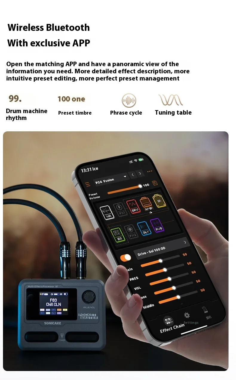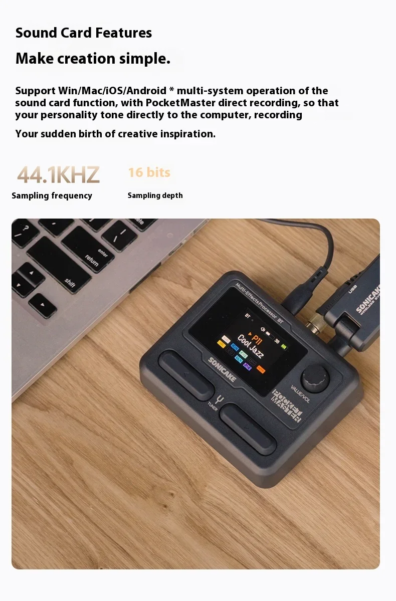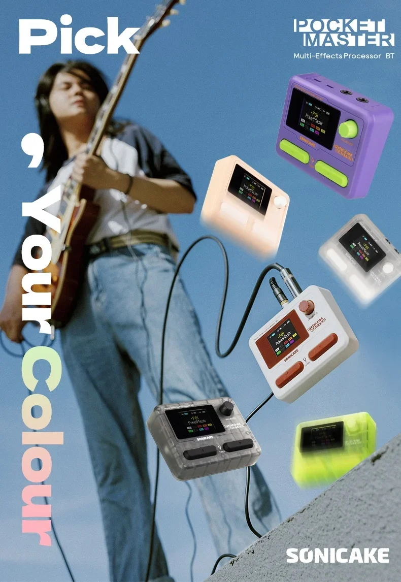 Sonicake Pocket Master Portable Electric Guitar Integrated Effect Device Pocket Bass Bluetooth Drum Machine Internal Recording