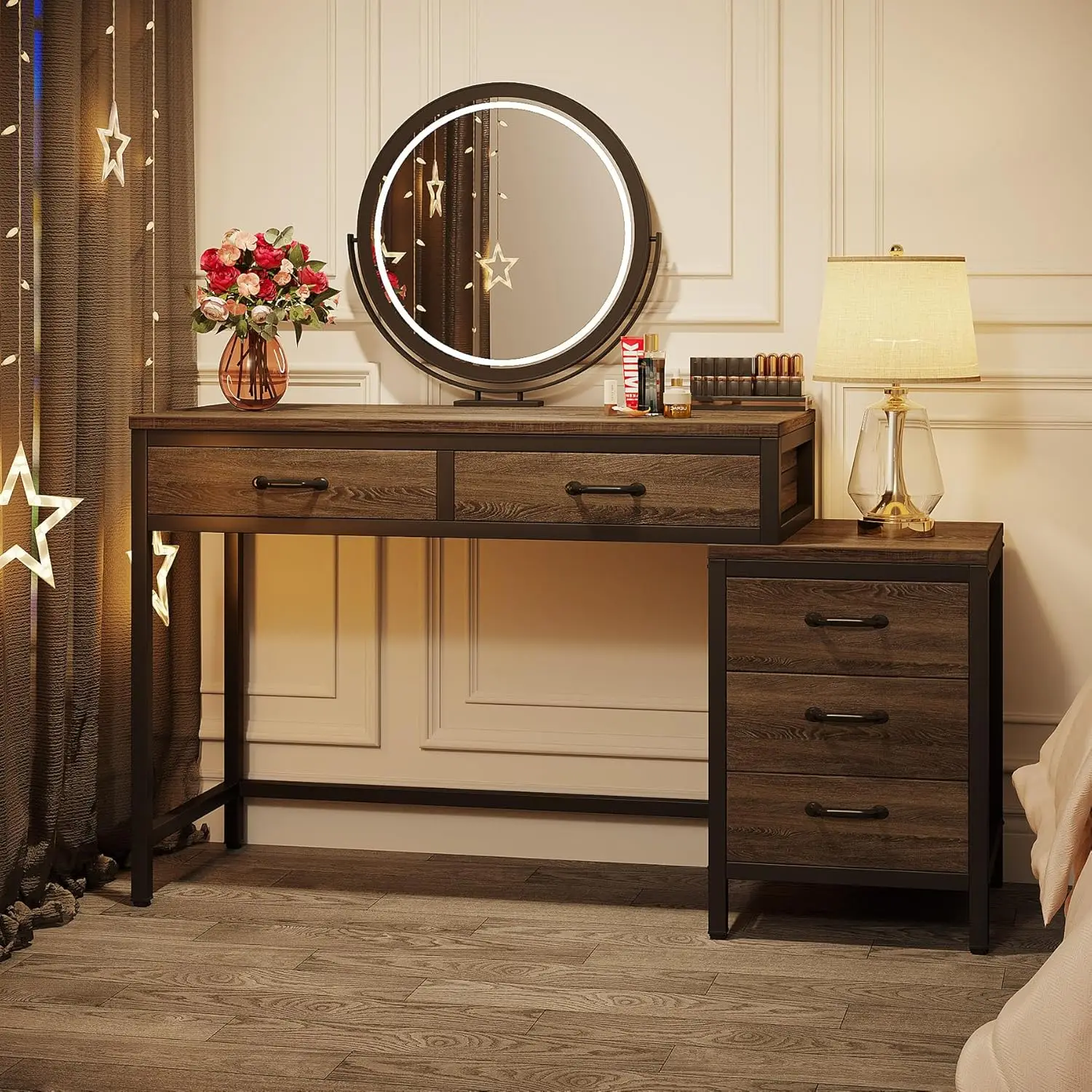 Vanity Desk with 5 Drawers, Makeup Vanity Table Dressing Table with Side 3-Drawer Chest (Without Mirror)