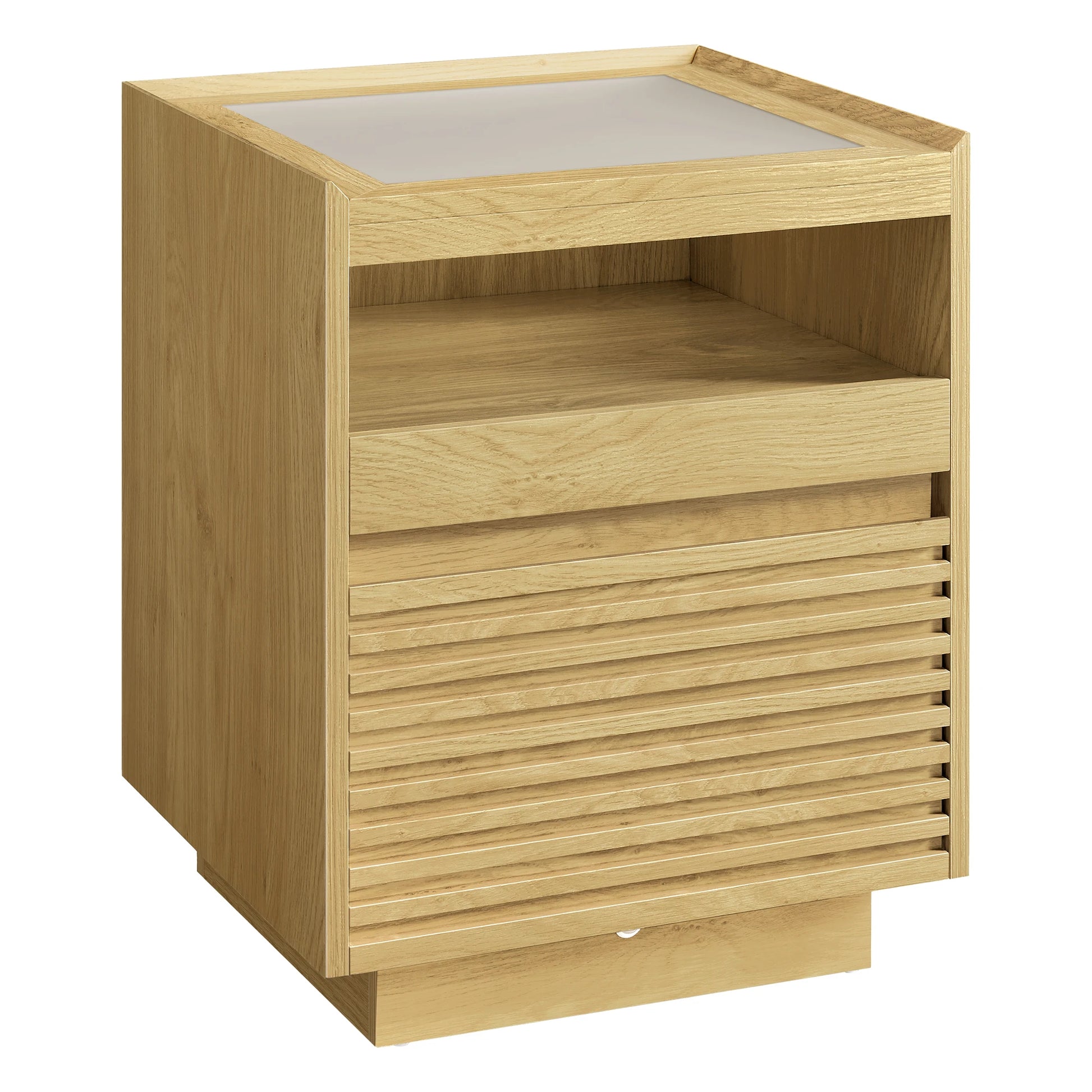 ScreeningWith the slatted design, floating plinth and natural color, the modern bedside table, which suits both Scandinavian and Japanese styles, creates an atmosphere that lets you fall gently into Morpheus's arms