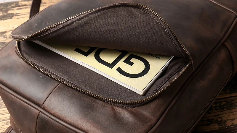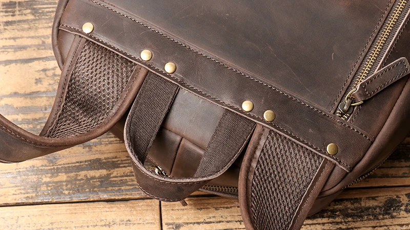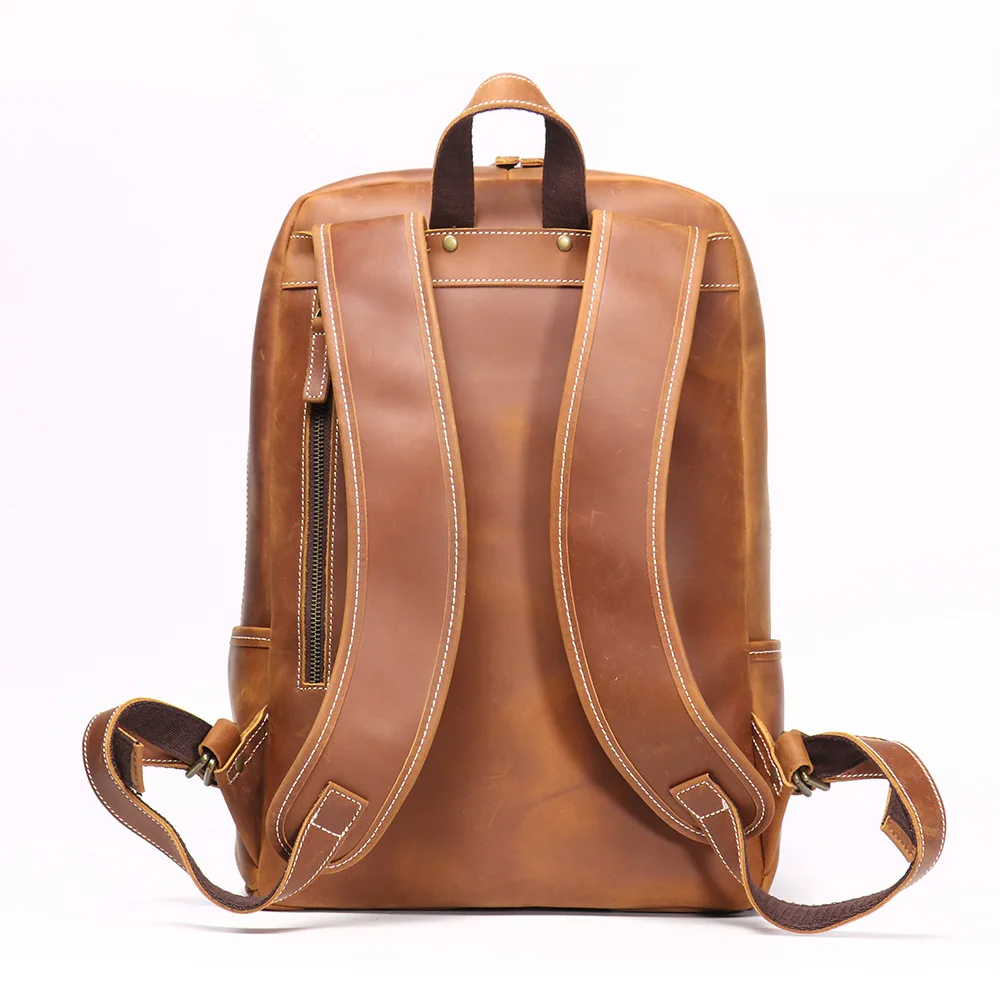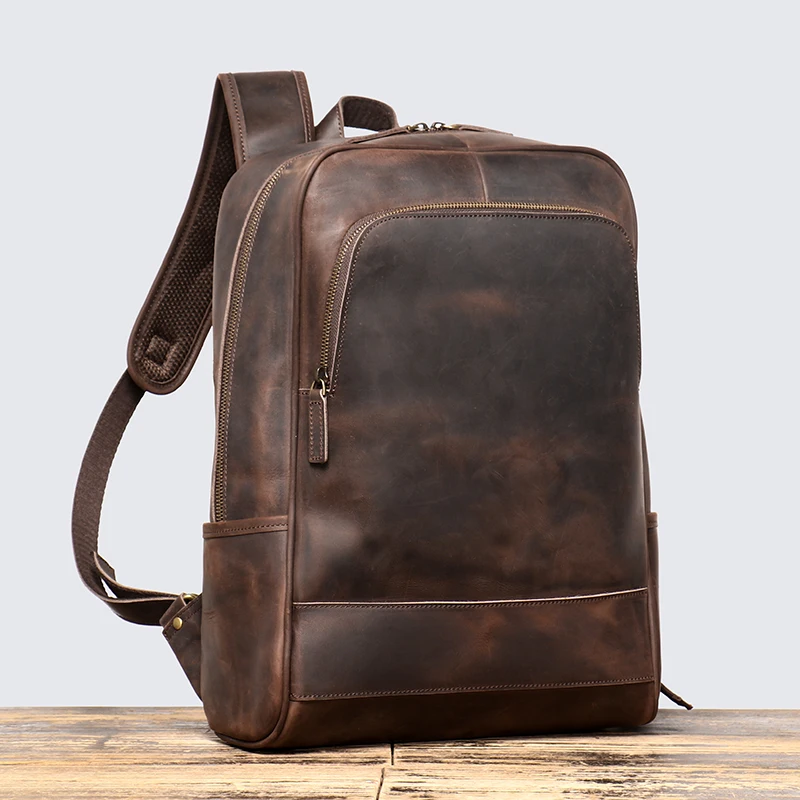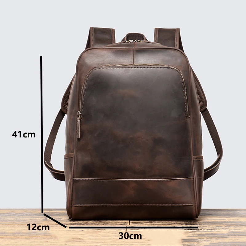 Vintage Men's Crazy Horse Leather Backpack Luxury Fashion Travel Backpack Large Capacity College Style Schoolbag Laptop Bag