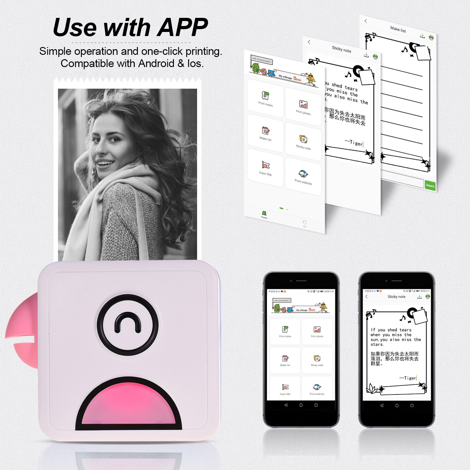 Wireless Mobile Printer 203DPI Bluetooth Connection for Journal Crafts Travel Photos for Mobile Phone with 1 Roll Paper 57*30mm Pink